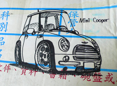 亂畫 Mini Cooper Posted on 2006/11/142007/07/03 by wahaha 話說三年前公司搬家時,東西都打包在紙箱裡,裝好後貨車還沒回來載下一批,一時無聊就拿支簽字筆在紙箱上畫了這台Mini Cooper。後來搬到新公司,東西歸定位,結果這箱子裡面裝的好像都是些無關緊要的東西,也是因為懶啦,就這樣擺了一年多還沒拆,被引為部門裡的笑柄。 後來呢?箱子是有打開啦,也拿出大概1/3東東,但後來實在沒地方擺裡面剩下的東西,又封起來了,這樣上面才好繼續堆東西…… 😛