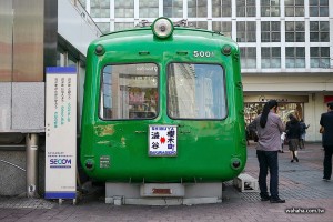 這個,該怎麼說呢?在往地鐵站的通站裡,先在牆上貼上一面樹林的圖片,然後再前方加上木頭柵欄,突然間變得很有和風,走在這裡根本感覺不出是在地下的通道。