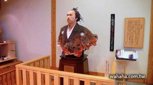 在入口上方也有「癒しの嵐電」的字樣,左邊則是吉川先生拿著大毛筆揮毫的照片。