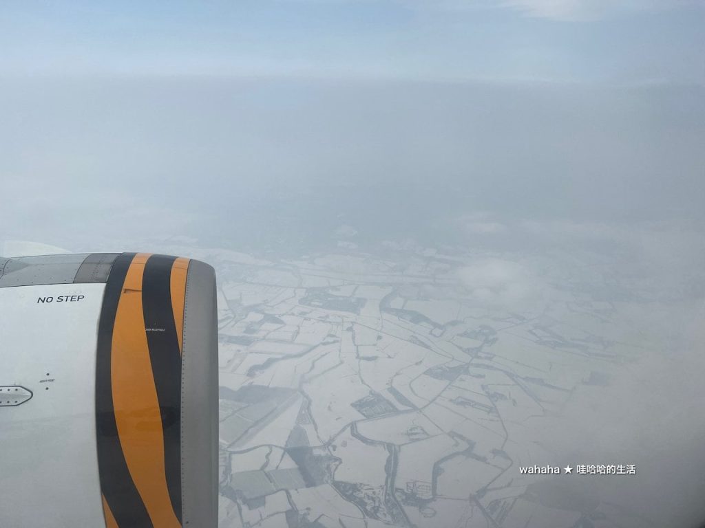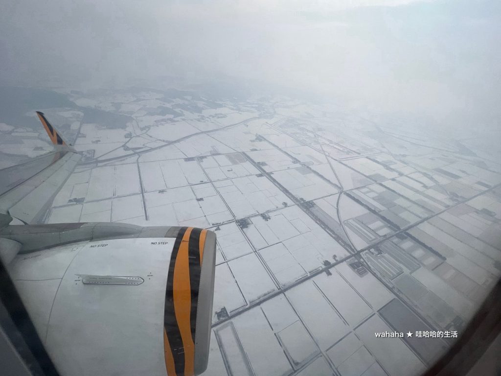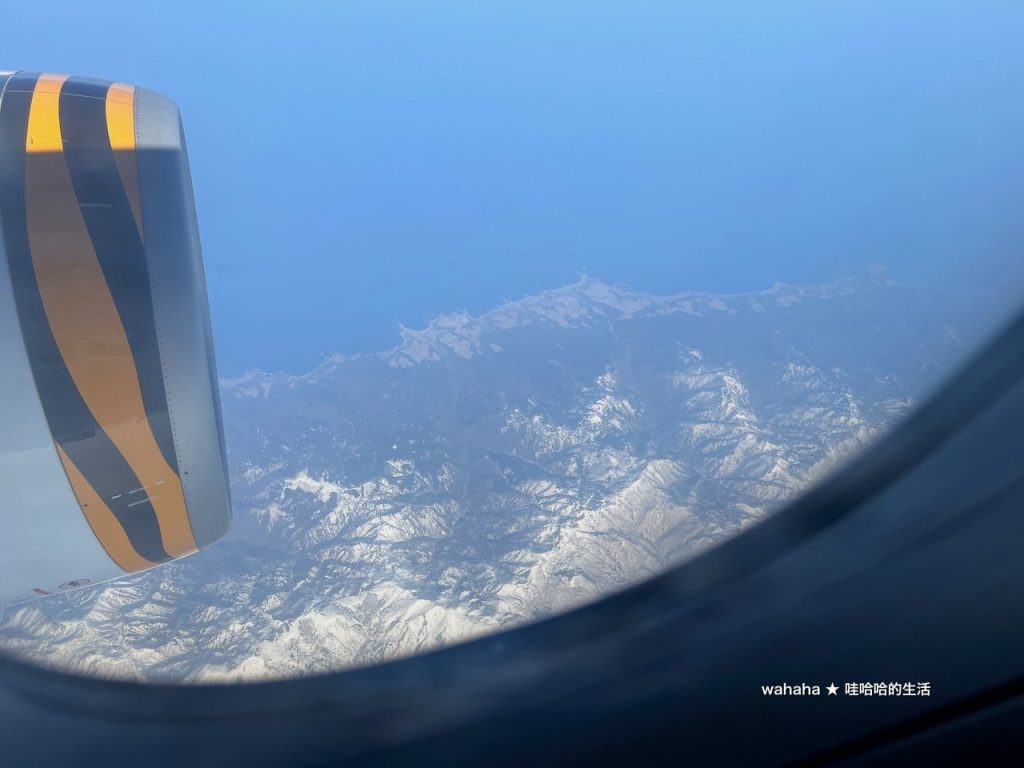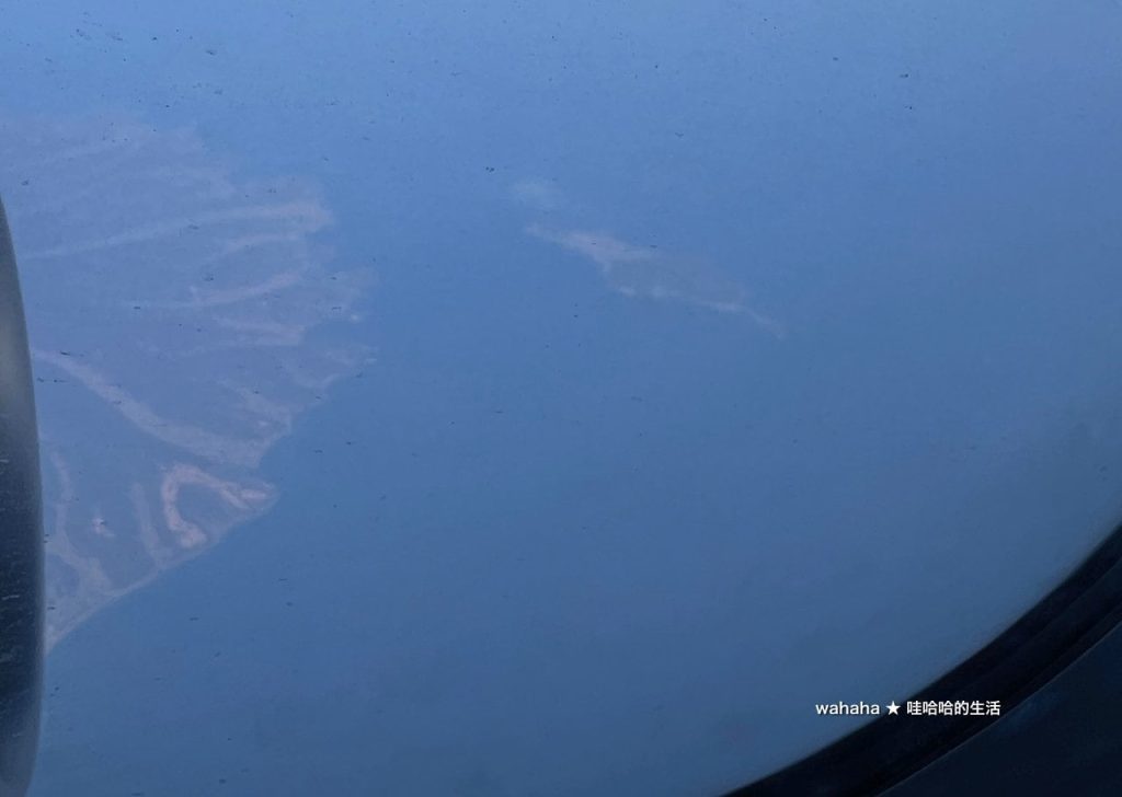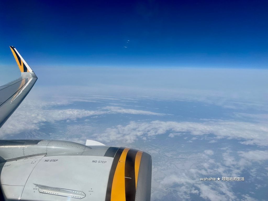 虎航的飛機沒有個人娛樂電視,這沒關係,自己有帶iPad並且預先下載了Netflix的電影,殺時間不成問題,但沒想到連公共的電視也沒有,這樣就不能查看飛機目前的位置了。可能是半夜幾乎沒什麼睡,影片看了一會兒就撐不住想睡了,醒來一會兒往窗外一看,這是哪兒啊?完全看不出來。然後又繼續睡了。