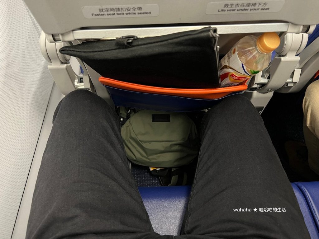 上一次搭飛機已經好久之前了,一下子也無法比較,不過虎航的腿部空間是有些侷促,再放個平板和飲料瓶就更擠了。