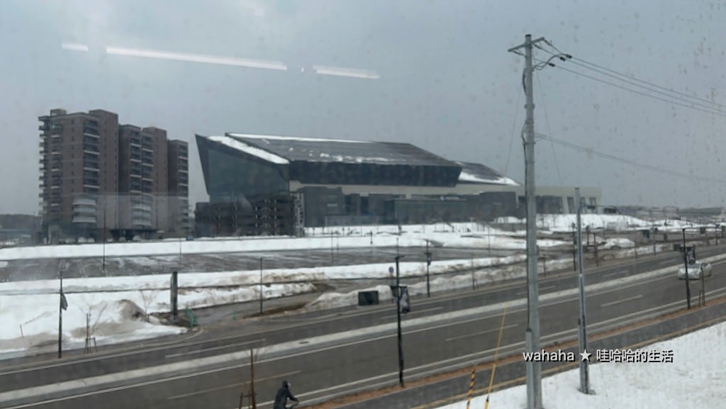 當電車駛離「北廣島」站後,拿起手機盯著左邊窗外看,沒過多久一座龐然大物出現眼前,這就是在今年球季成為日本火腿隊新主場的「エスコンフィールドHOKKAIDO(ES CON Field)」。